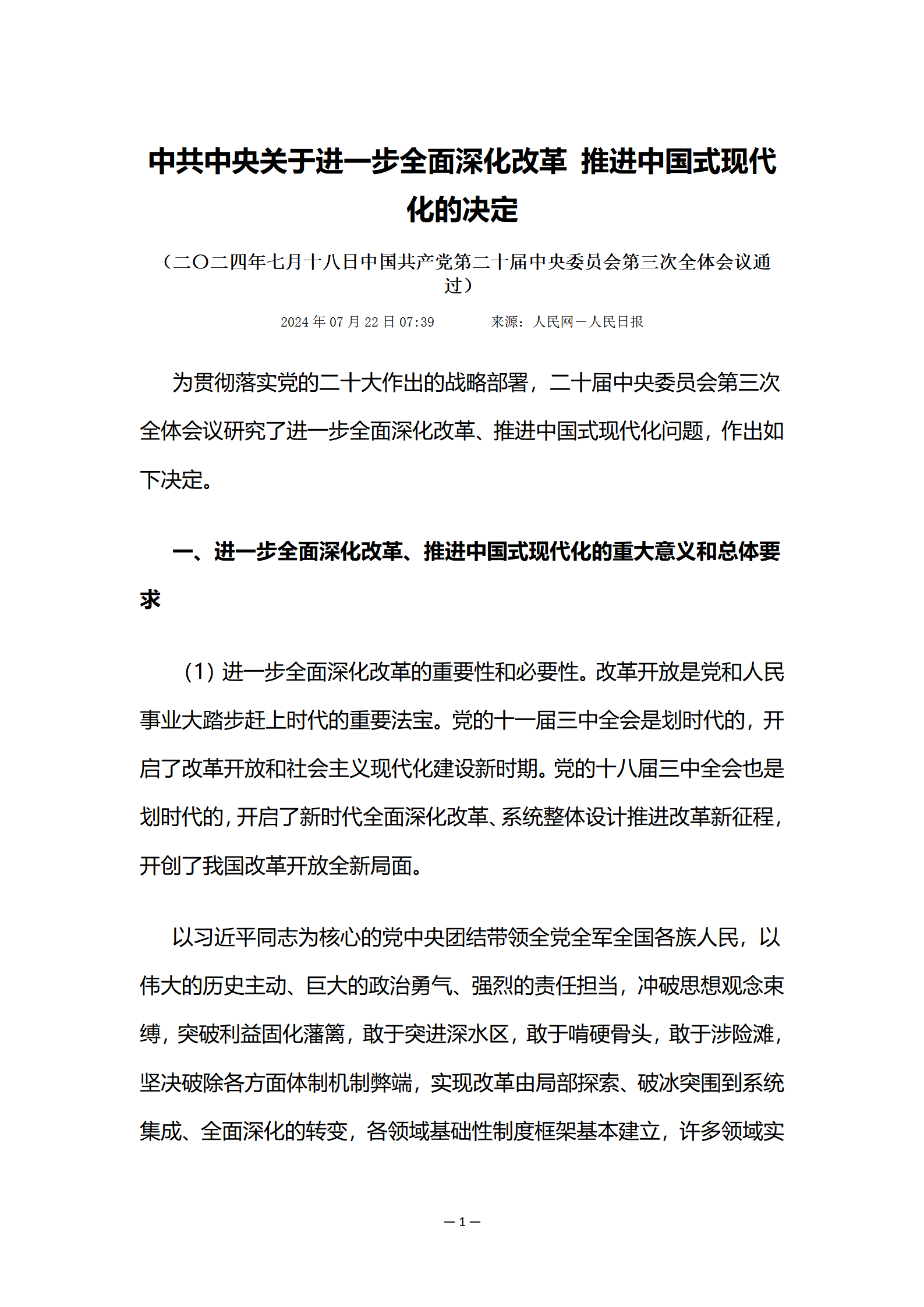 中共中央關(guān)于進(jìn)一步全面深化改革 推進(jìn)中國式現代化的決定